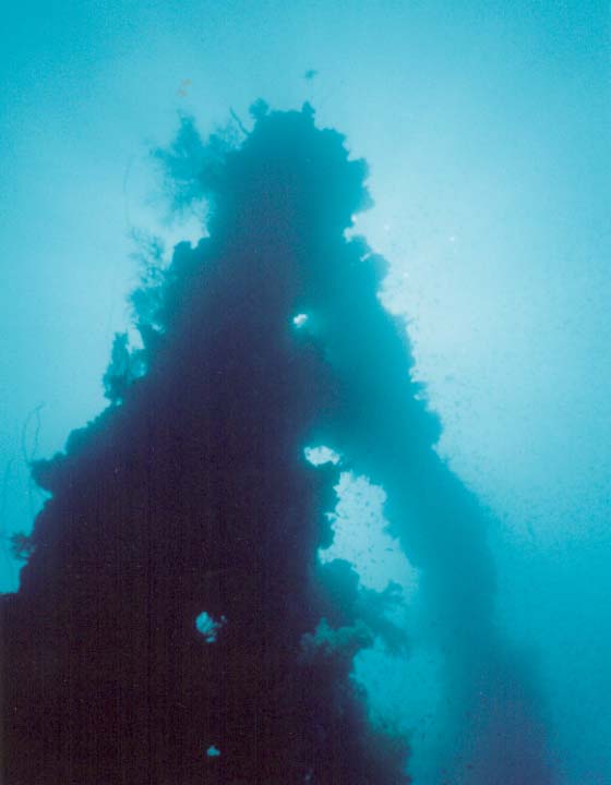 Kingpost on sunken Japanese supply ship.